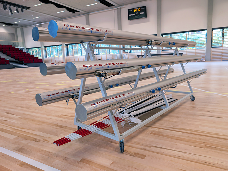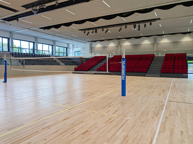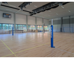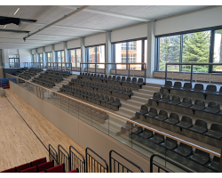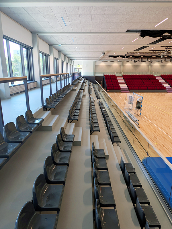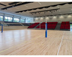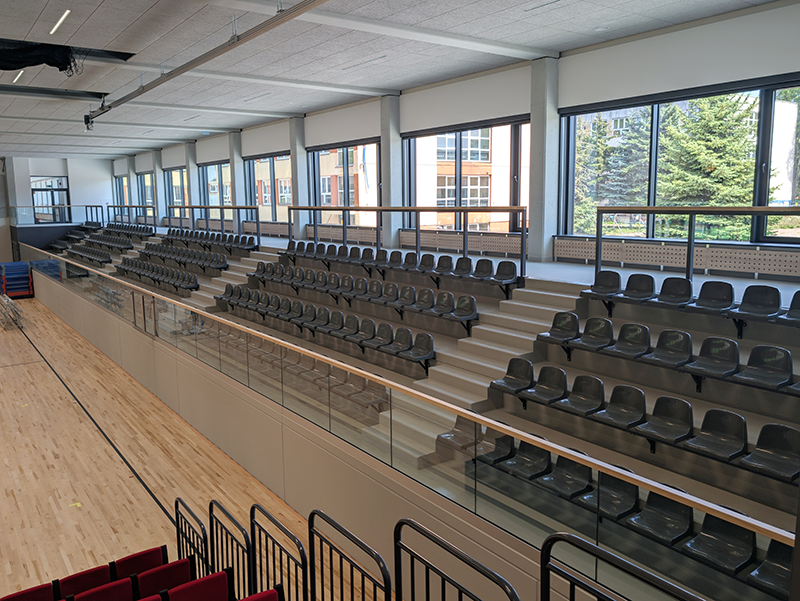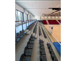 Rodzaj zamówienia: Produkcja, dostawa i montaż wyposażenia sportowego, trybuny teleskopowej elektrycznej 9-rzędowej oraz 256 sztuk siedzisk plastikowych z oparciem o wysokości 32 cm na konstrukcji stalowej mocowanych do stopnia na widowni hali sportowej przy XXX Liceum Ogólnokształcącym w Krakowie, Polska