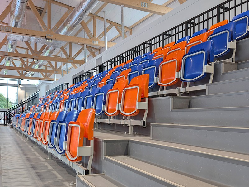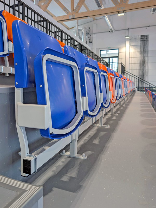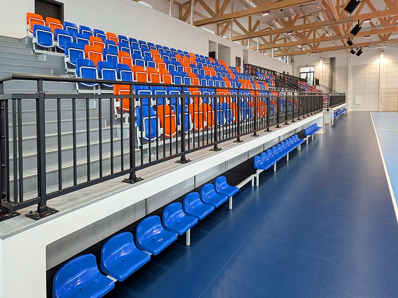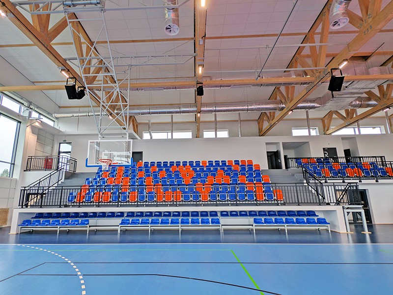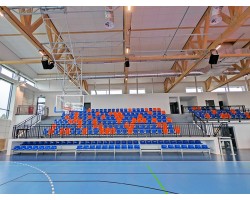 Rodzaj zamówienia: Produkcja, dostawa i montaż wyposażenia sportowego, trybun o konstrukcji stalowej 2-rzędowych TS-P z siedziskami plastikowymi z oparciem we wszystkich rzędach oraz 285 sztuk siedzisk składanych grawitacyjnie na konstrukcji stalowej na widowni hali sportowej przy Zespole Szkół Ogólnokształcących Nr 1 w Mielcu, Polska