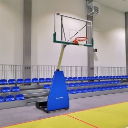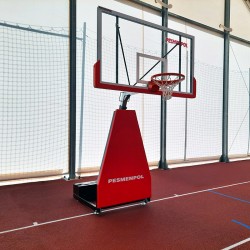 System przejezdny do koszykówki NAJA MINI z manualną regulacją wysokości konstrukcji za pomocą teleskopowego ramienia wysięgu. Przeznaczony jest do instalacji wszystkich typów tablic o wymiarach 90x120 cm lub 105x180 cm oraz dowolnych modeli obręczy stałych i uchylnych produkcji PESMENPOL.
