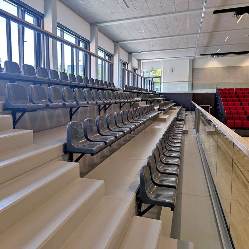 Zaokrąglona oraz gładka powierzchnia siedzisk zapewnia widzowi komfort oraz bezpieczeństwo użytkowania.