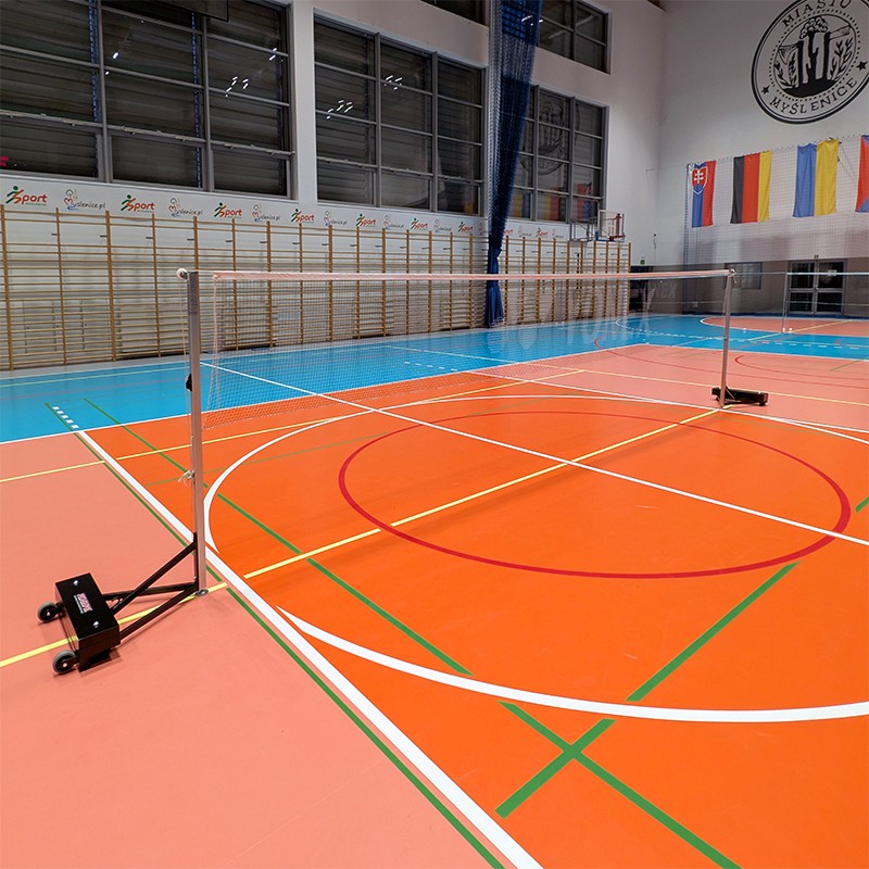 Stojaki do badmintona przejezdne na kółkach, z obciążeniem regulowanym 30/60/90 kg. Zgodne z przepisami BWF.